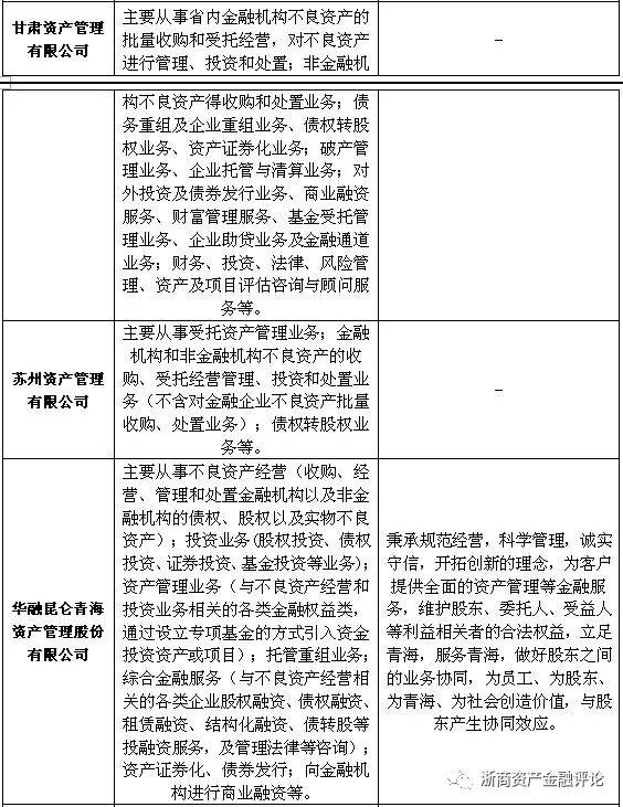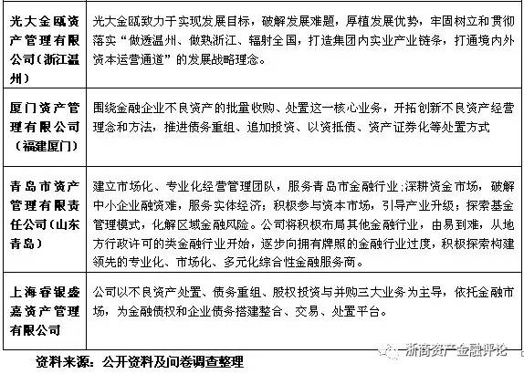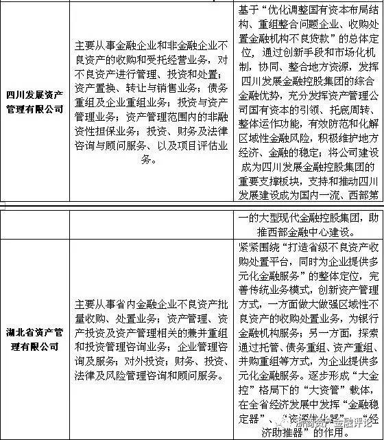 值得注意的是,除去主流的不良資產(chǎn)處置業(yè)務(wù)、資產(chǎn)管理業(yè)務(wù)、投資與咨詢等方面的業(yè)務(wù)外。部分資產(chǎn)管理公司另辟蹊徑,開展了一些較為獨(dú)特的業(yè)務(wù)。具體來看,較為特殊的有上海國(guó)有資產(chǎn)經(jīng)營(yíng)有限公司的不動(dòng)產(chǎn)投資業(yè)務(wù)、重慶渝富資產(chǎn)經(jīng)營(yíng)管理集團(tuán)有限公司的土地經(jīng)營(yíng)和城市建設(shè)業(yè)務(wù)以及福建省閩投資產(chǎn)管理有限公司的對(duì)金融、基礎(chǔ)設(shè)施、高新技術(shù)產(chǎn)業(yè)、工業(yè)、制造業(yè)、服務(wù)業(yè)的投資與管理業(yè)務(wù)等等。上述業(yè)務(wù)的開展,很大程度上與地區(qū)的行業(yè)優(yōu)勢(shì)或地方政府的相關(guān)規(guī)劃和發(fā)展需要相關(guān)。
