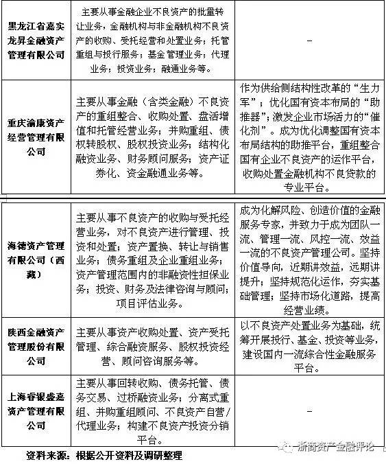 從長(zhǎng)期來看,隨著去產(chǎn)能、降杠桿、結(jié)構(gòu)轉(zhuǎn)型的推進(jìn),山西、吉林、黑龍江、河南等重工業(yè)、能源業(yè)比重較高的省份,承擔(dān)著較大的傳統(tǒng)產(chǎn)業(yè)(鋼鐵、化工、有色、建材等)轉(zhuǎn)型升級(jí)的壓力,因此中部部分地區(qū)的不良資產(chǎn)在未來幾年將繼續(xù)上升。同理,東部地區(qū)部分省份(以黑龍江、吉林為代表的老牌工業(yè)基地)的產(chǎn)業(yè)結(jié)構(gòu)也亟需調(diào)整,不良資產(chǎn)市場(chǎng)將快速擴(kuò)張。而這也為上述區(qū)域的資產(chǎn)管理公司帶來了機(jī)遇,不良資產(chǎn)處置需求的上升,將推進(jìn)地方AMC不良資產(chǎn)處置業(yè)務(wù)的發(fā)展,擴(kuò)大不良資產(chǎn)處置業(yè)務(wù)的規(guī)模,充分發(fā)揮地方金融穩(wěn)定器的職能,助力地方產(chǎn)業(yè)轉(zhuǎn)型升級(jí)。