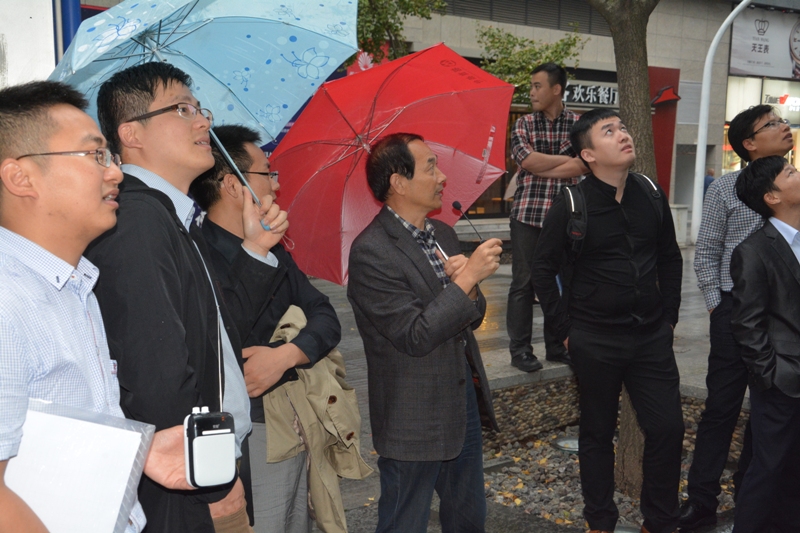 葉寶山書記冒雨為大家講解公司歷史傳承及金信信托歷史