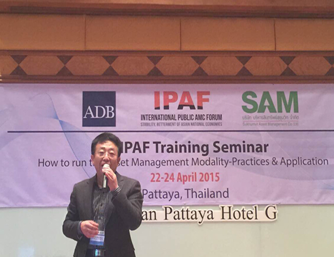 2015年4月22日-24日,浙江省浙商資產(chǎn)管理有限公司首席戰(zhàn)略官李傳全博士等3人應(yīng)邀參加了在泰國芭提雅舉行的第三屆IPAF(International Public AMC Forum,國際公共資產(chǎn)管理公司論壇)培訓(xùn)研討會(huì),與亞太地區(qū)的十多家資產(chǎn)管理公司、專家學(xué)者等就不良資產(chǎn)收購處置等專題進(jìn)行面對(duì)面交流。