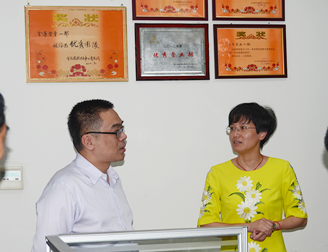 2016年6月2日下午,浙江國貿(mào)集團副總裁、浙商資產(chǎn)董事長藍翔一行抵達金華,對下屬金信資產(chǎn)、般若理財金華營業(yè)部、奧托康制藥公司等進行視察指導(dǎo)工作。
