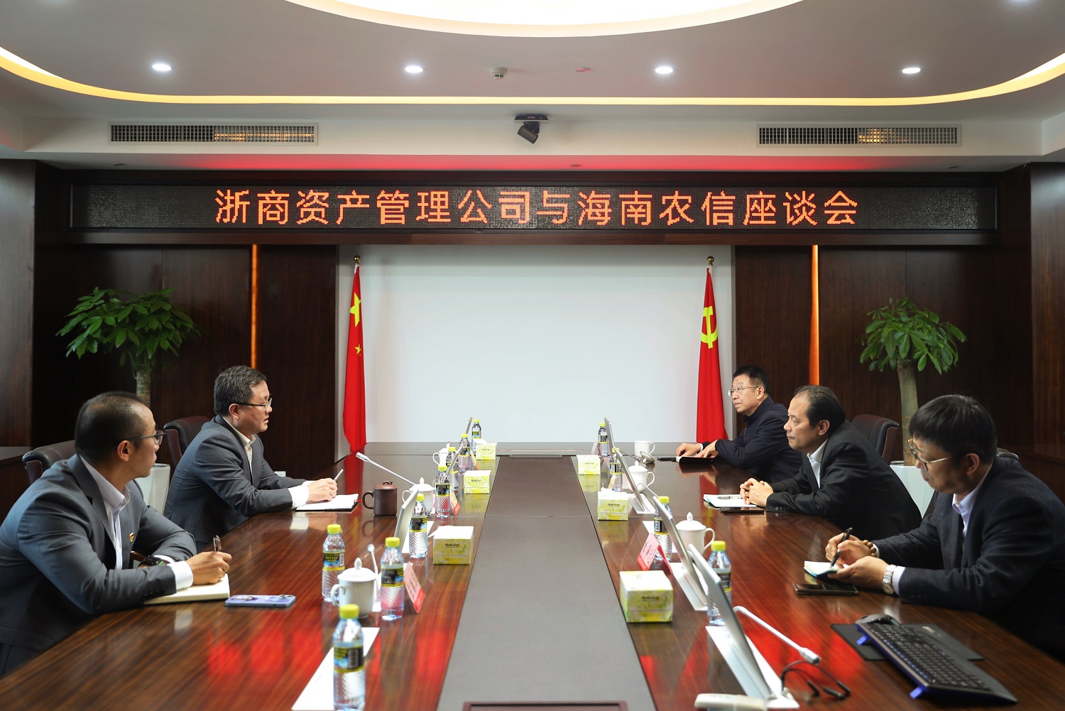 2月23日上午,孫建華一行與海南聯(lián)合資產(chǎn)董事長(zhǎng)張波,黨委副書記兼總經(jīng)理李賢俊等進(jìn)行座談交流,積極探討業(yè)務(wù)合作方向,共同探索地方AMC高質(zhì)量發(fā)展路徑。孫建華表示,自成立以來(lái),浙商資產(chǎn)深入貫徹落實(shí)浙江省委、省政府的安排部署,緊抓改革發(fā)展契機(jī),矢志踐行初心使命,履行國(guó)企擔(dān)當(dāng),深耕不良資產(chǎn)處置與經(jīng)營(yíng)主業(yè),設(shè)立了五大區(qū)域分公司,實(shí)現(xiàn)覆蓋全省、走向全國(guó)的區(qū)域布局,希望雙方開(kāi)展常態(tài)化溝通交流,助力行業(yè)高質(zhì)量發(fā)展。張波對(duì)孫建華一行表示熱烈歡迎,并介紹了海南聯(lián)合資產(chǎn)歷史沿革、經(jīng)營(yíng)管理和業(yè)務(wù)布局等情況。他表示,一直以來(lái),浙商資產(chǎn)在業(yè)務(wù)模式、業(yè)務(wù)布局等方面先行先試,為行業(yè)轉(zhuǎn)型做出了有益探索,是海南聯(lián)合資產(chǎn)學(xué)習(xí)的對(duì)象;當(dāng)前,海南聯(lián)合資產(chǎn)致力于摸索出一條市場(chǎng)化道路,而浙商資產(chǎn)在市場(chǎng)化治理機(jī)制上引領(lǐng)行業(yè),實(shí)現(xiàn)了國(guó)企治理與市場(chǎng)化規(guī)律全方位融合,對(duì)于海南聯(lián)合資產(chǎn)進(jìn)一步推進(jìn)高質(zhì)量發(fā)展具有重要借鑒意義;自由貿(mào)易港的建設(shè)將為海南未來(lái)的發(fā)展帶來(lái)重大轉(zhuǎn)機(jī),希望與浙商資產(chǎn)開(kāi)展多層次合作,形成資源和優(yōu)勢(shì)互補(bǔ),共同助力海南自貿(mào)港建設(shè)。
