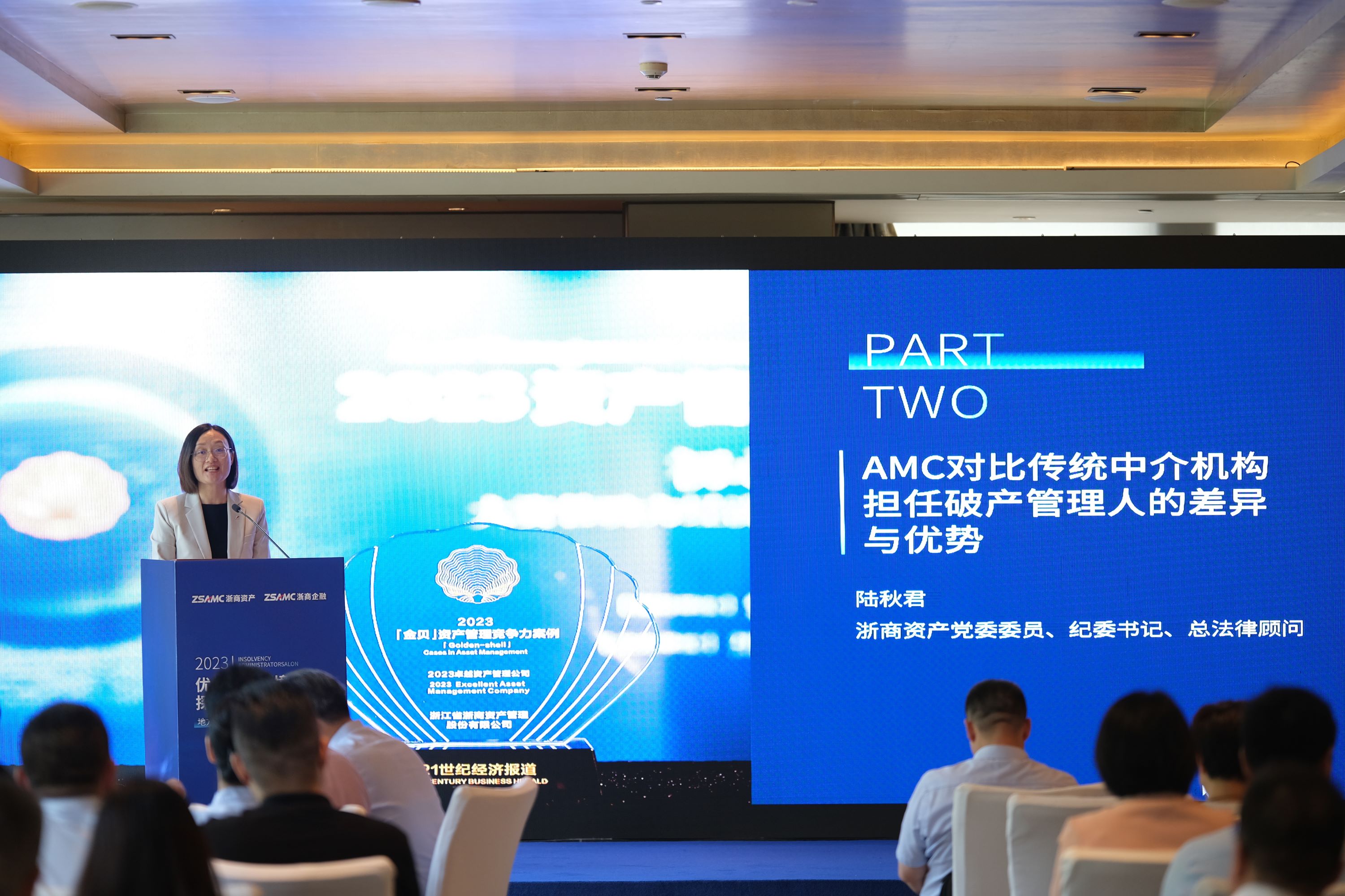 浙商資產(chǎn)黨委委員、紀(jì)委書(shū)記、總法律顧問(wèn)陸秋君從專業(yè)經(jīng)驗(yàn)、治理結(jié)構(gòu)、人才配置、資源整合、資金融通等方面著重分析了AMC對(duì)比傳統(tǒng)中介機(jī)構(gòu)在擔(dān)任破產(chǎn)管理人方面的比較優(yōu)勢(shì),并指出AMC應(yīng)準(zhǔn)確把握當(dāng)前經(jīng)濟(jì)社會(huì)發(fā)展新形勢(shì),加強(qiáng)破產(chǎn)管理業(yè)務(wù)的雙向加速賦能,依照前瞻化、市場(chǎng)化、法治化原則,因地制宜,采取債權(quán)轉(zhuǎn)讓、托管、債務(wù)重組、資產(chǎn)重組、共益?zhèn)?、破產(chǎn)重整、市場(chǎng)化債轉(zhuǎn)股、財(cái)務(wù)顧問(wèn)等多種方式化解風(fēng)險(xiǎn),充分發(fā)揮地方AMC功能作用。