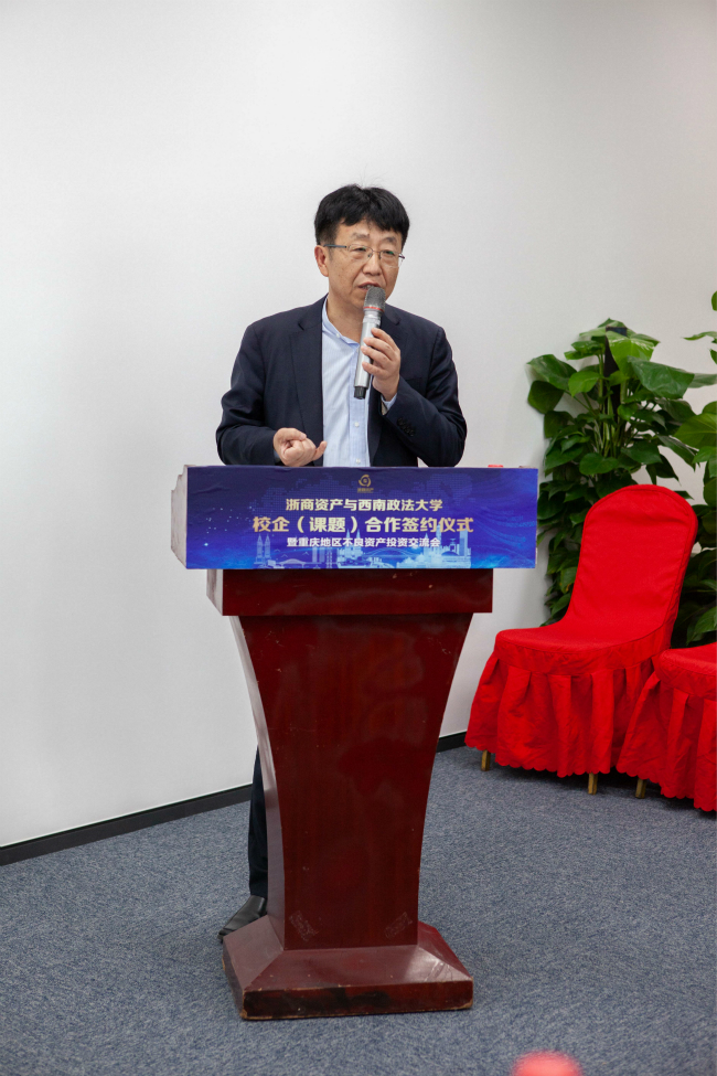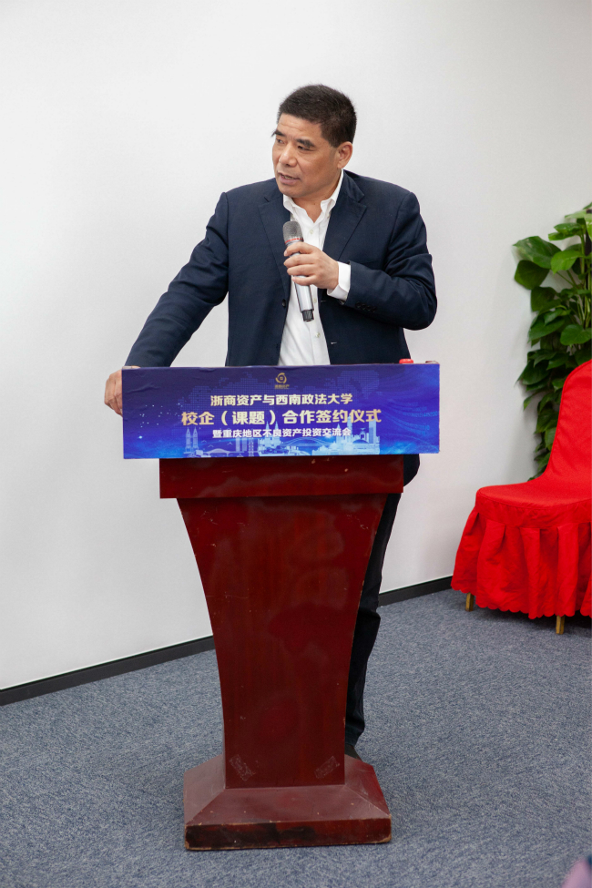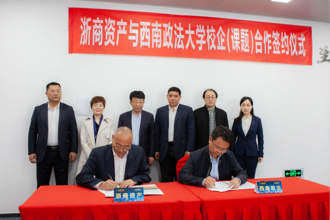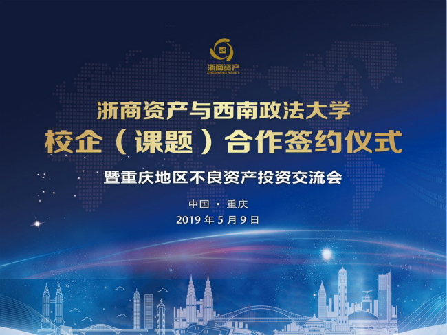 2019年5月9日上午,值川渝(重慶)辦事處開(kāi)業(yè)之際,浙商資產(chǎn)舉辦了與西南政法大學(xué)校企(課題)合作簽約儀式暨重慶地區(qū)不良資產(chǎn)投資交流會(huì)。浙商資產(chǎn)常務(wù)副總經(jīng)理兼首席戰(zhàn)略官李傳全、業(yè)務(wù)副總經(jīng)理吳張根、總經(jīng)理助理兼財(cái)務(wù)總監(jiān)宮娟,西南政法大學(xué)副校長(zhǎng)商文江、人工智能法學(xué)院院長(zhǎng)陳亮等出席簽約儀式。