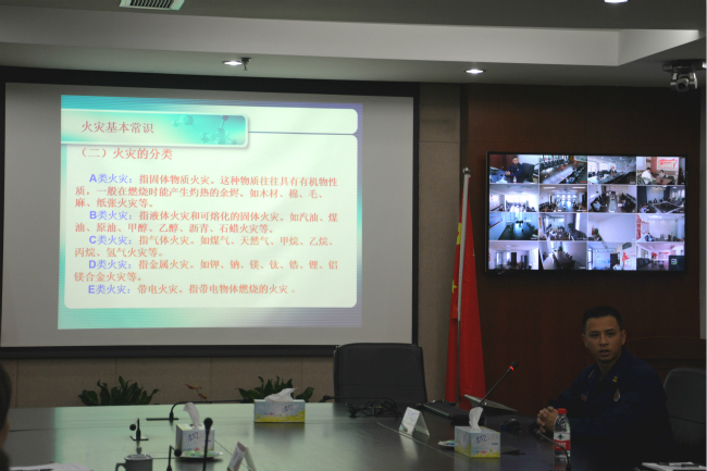 會(huì)后,湖濱消防中隊(duì)班長(zhǎng)徐文俊給公司新員工作了消防知識(shí)講座。