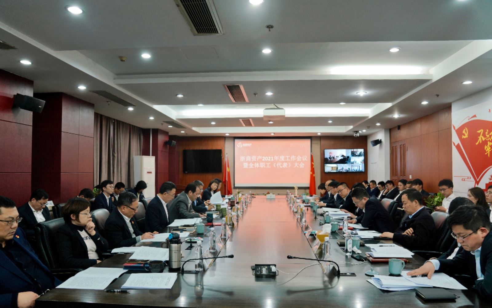2月24日,浙商資產(chǎn)召開2021年度工作會(huì)議暨全體職工(代表)大會(huì)。會(huì)議全面總結(jié)2020年及“十三五”亮點(diǎn)工作,表彰獎(jiǎng)勵(lì)各類先進(jìn),并安排部署2021年重點(diǎn)工作。本次會(huì)議采取“現(xiàn)場(chǎng)+視頻”形式,省國貿(mào)集團(tuán)委派董監(jiān)事,浙商資產(chǎn)領(lǐng)導(dǎo)班子及業(yè)務(wù)副總,浙商資產(chǎn)本級(jí)及成員公司全體員工(含浙北、浙越、浙商藍(lán)綠、浙商正諫,億利達(dá)派代表)、浙商資產(chǎn)外派人員等共計(jì)近600人參加會(huì)議。會(huì)議由公司黨委副書記、董事、工會(huì)主席陳霖主持。